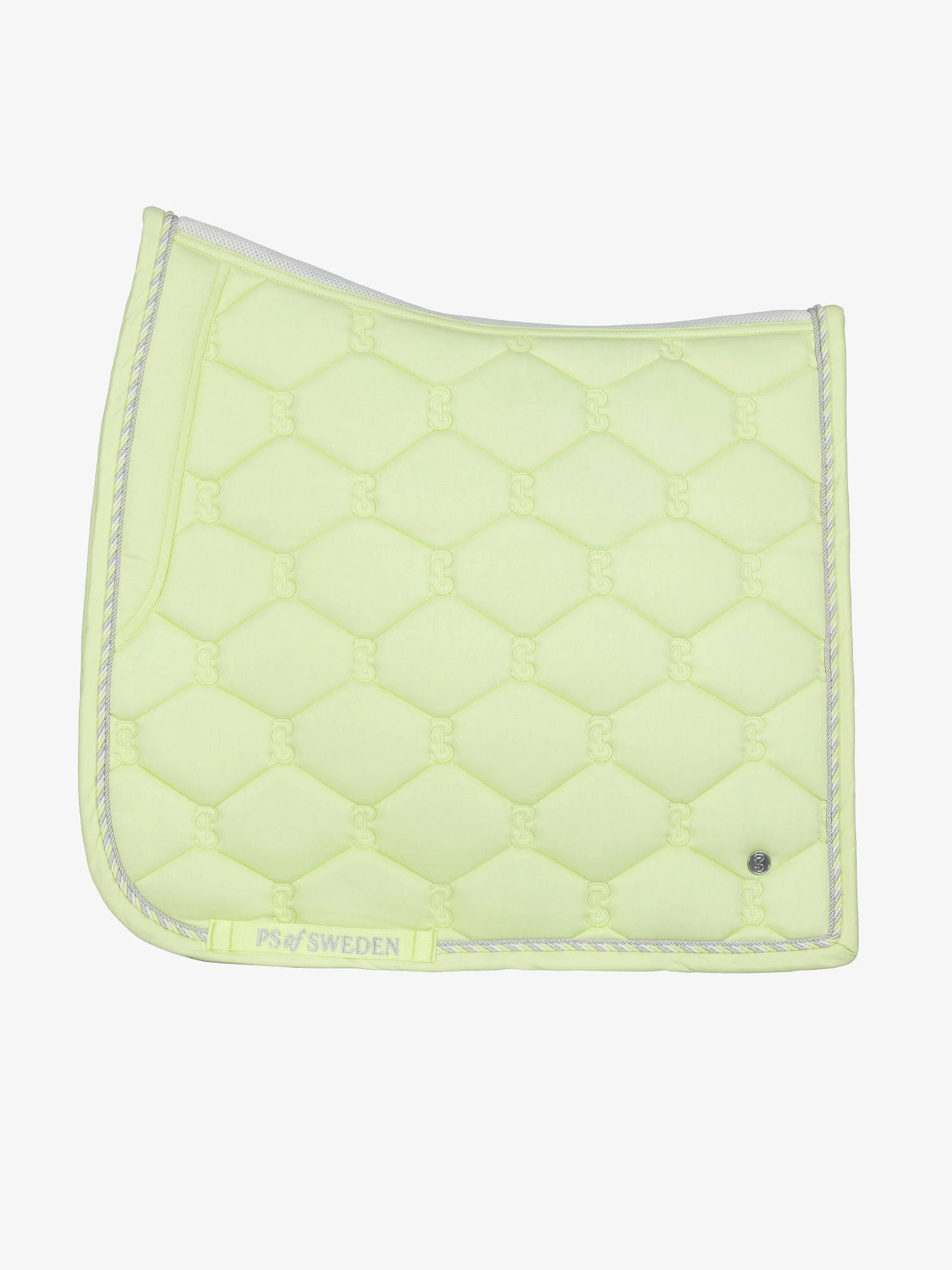 Anatomically shaped saddle pad with PS monogram quilting, cotton surface and mesh spine panel. Our saddle pads have extra space at the withers, and our unique stop-cushions that keep the saddle pad in place under the saddle. Underside is quick-dry material that transports moisture and is anti-bacterial.
